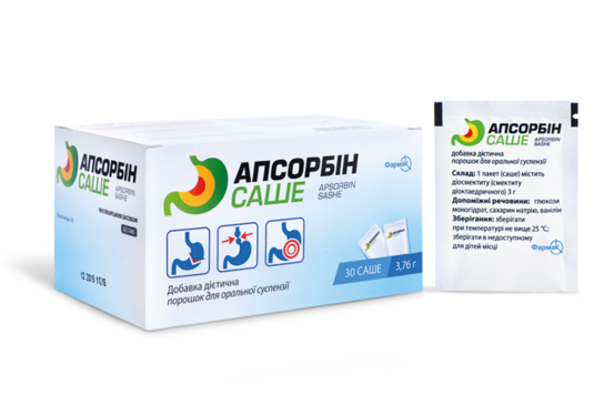 Средство Апсорбин Саше не зарегистрировано в качестве лекарственного препарата. Применяется при различных функциональных расстройствах ЖКТ и пищеварения, а также в качестве мощного детоксиканта, благодаря свойствам компонентов состава.