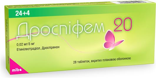 Дроспифем 20 - комбинированный пероральный контрацептив, содержащий этинилэстрадиол и дроспиренон. В терапевтических дозах дроспиренон проявляет антиандрогенные и умеренные антиминералокортикоидным свойства. Он не имеет эстрогенной, глюкокортикоидной и антиглюкокортикоидной активности. Итак, дроспиренон имеет схожий фармакологический профиль с естественным прогестероном. Противозачаточное действие препарата основано на взаимодействии различных факторов, важнейшими из которых является подавление овуляции и изменение цервикальной секреции.