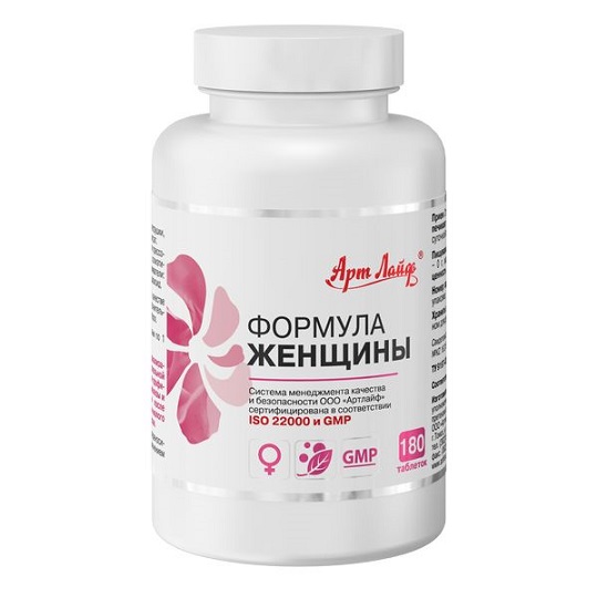 «Формула женщины» – сбалансированный комплекс, созданный с учетом потребностей женского организма. Комплекс нормализует минеральный баланс в организме и рекомендован для профилактики заболеваний, связанных с изменением гормонального фона: остеопороза, опухолевых заболеваний груди и половых органов; устранения неприятностей, связанных с предменструальным синдромом, пре- и постклимаксом.