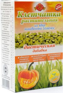 Клетчатка семян тыквы – уникальный по своим свойствам продукт. Это ежедневная еда и полезный заменитель хлеба, т.к. в клетчатке отсутствуют дрожжи и белая мука. Клетчатку можно и полезно добавлять в состав любых блюд. Клетчатка семян тыквы способствует более полноценному усвоению пищи и нормализует микрофлору кишечника, имеет способность сорбировать и выводить из организма токсичные вещества, шлаки, избыток холестерина, аммиака и желчных пигментов, мягко устраняет синдром похмелья.