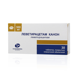 Леветирацетам Канон - пПротивоэпилептическое средство, механизм действия неясен, не изменяет нормальную синаптическую передачу. Эффективен как при фокальной, так и при большой эпилепсии (эпилептиформные проявления, фотопароксизмальная реакция). Стабильное состояние достигается через 48 ч при приеме препарата 2 раза в сутки.