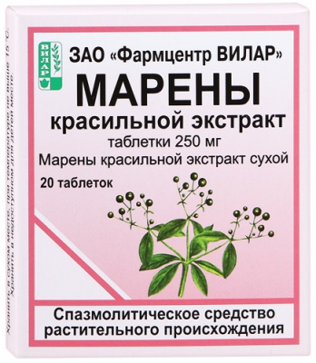 Марены красильной экстракт оказывает спазмолитическое и диуретическое действие. Способствует разрыхлению мочевых конкрементов, содержащих фосфаты кальция и магния, и их выведению из почек и мочевыводящих путей, благодаря снижению тонуса гладкой мускулатуры с последующим усилением ее перистальтики; подкисляет мочу, приводит к уменьшению болевого синдрома и улучшению общего состояния у больного нефроуролитиазом.