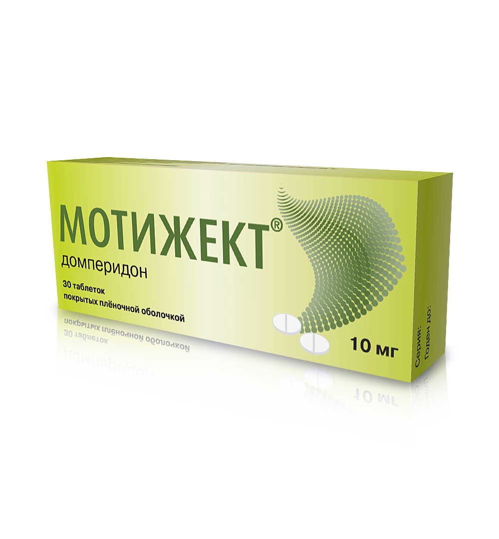 Мотижект - блокирует периферические и центральные (в триггерной зоне головного мозга) дофаминовые рецепторы, устраняет ингибирующее влияние дофамина на моторную функцию желудочно-кишечного тракта и повышает эвакуаторную и двигательную активность