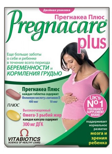 Pregnacare Plus - рекомендуется в качестве БАД к пище для беременных и кормящих грудью женщин – дополнительного источника ПНЖК омега-3 (докозагексаеновой кислоты), витаминов (С, Д, Е, В1, В2, В6, В12, РР, К, фолиевой кислоты, пантотеновой кислоты, бета-каротина) и минеральных веществ (магний, цинк, железо, йод, медь, селен), содержащей эйкозапентаеновую кислоту.
